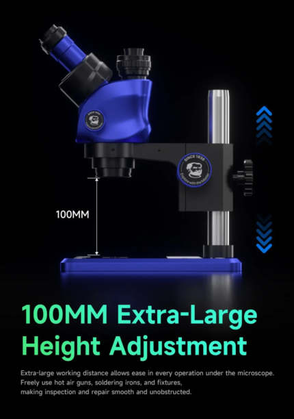 MECHANIC 6558 Elite Trinocular Stereo Microscope, 6.5X-58X Zoom, 100mm Large Working Distance, for PCB Repair & Micro Soldering