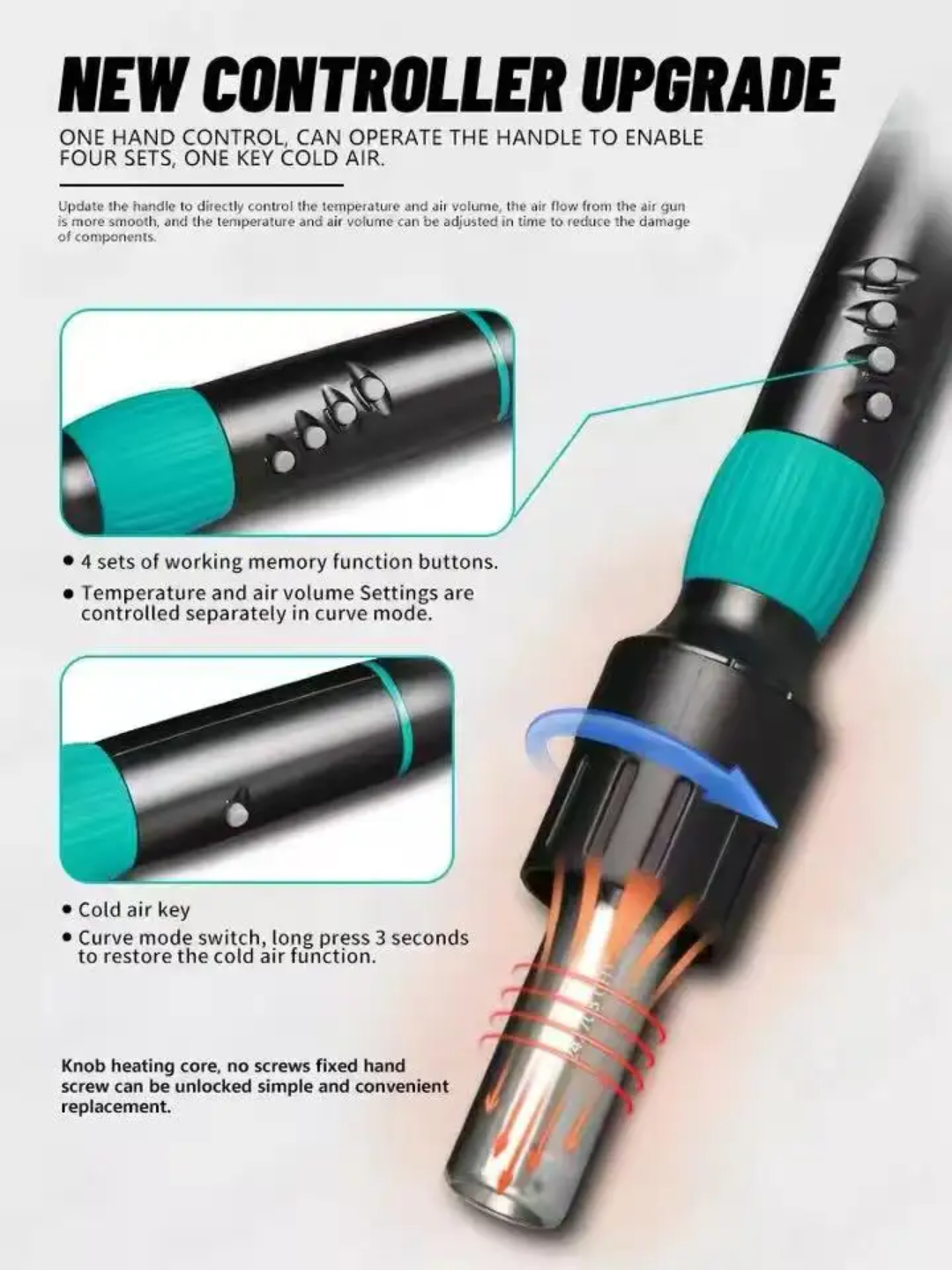 3. The new cold air/hot air conversion function can blow out cold air, which is more convenient and quicker when working.